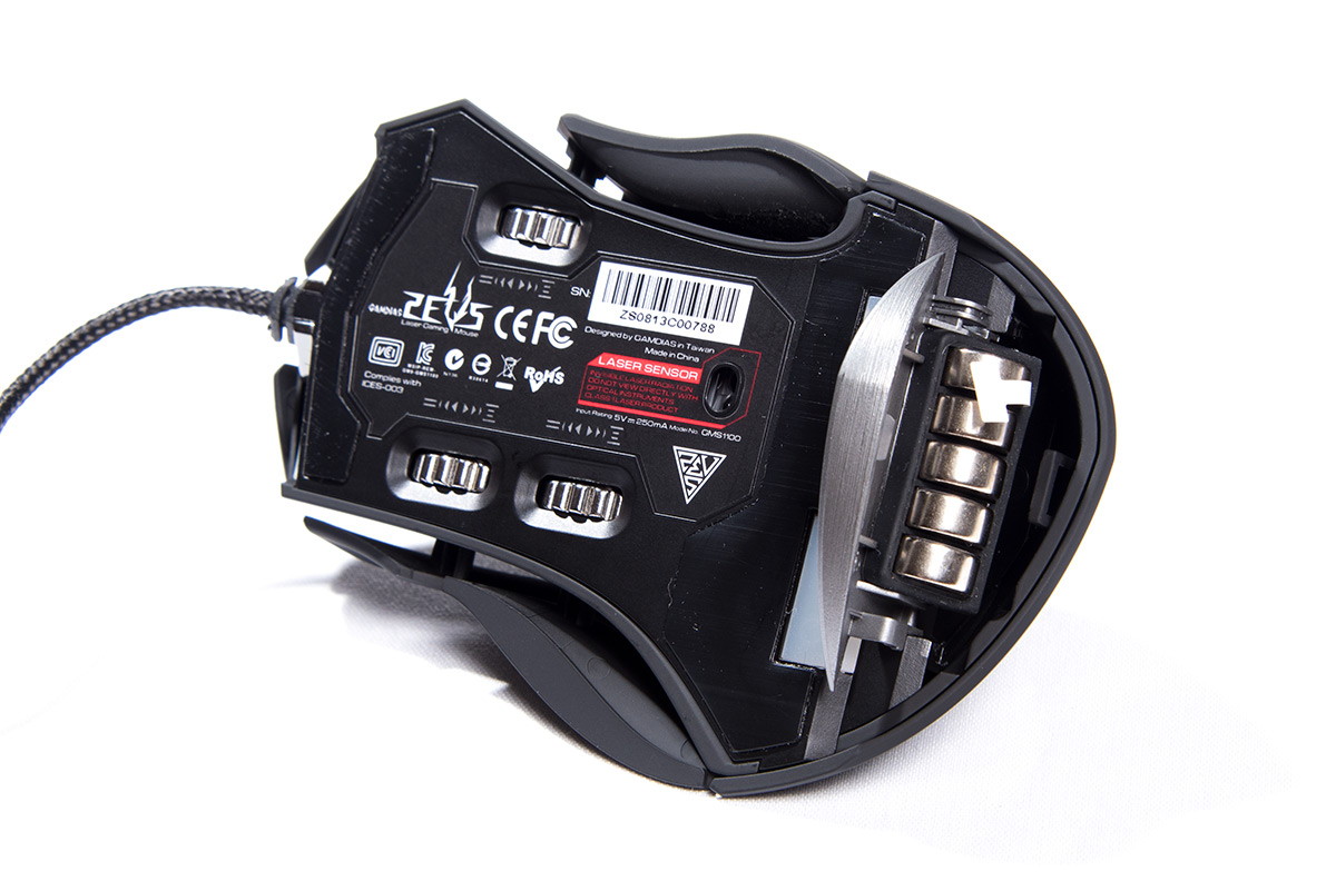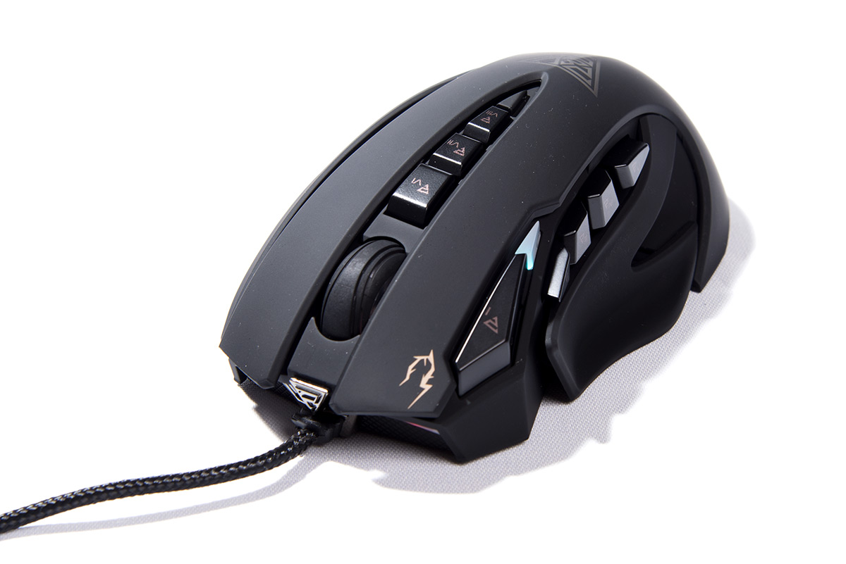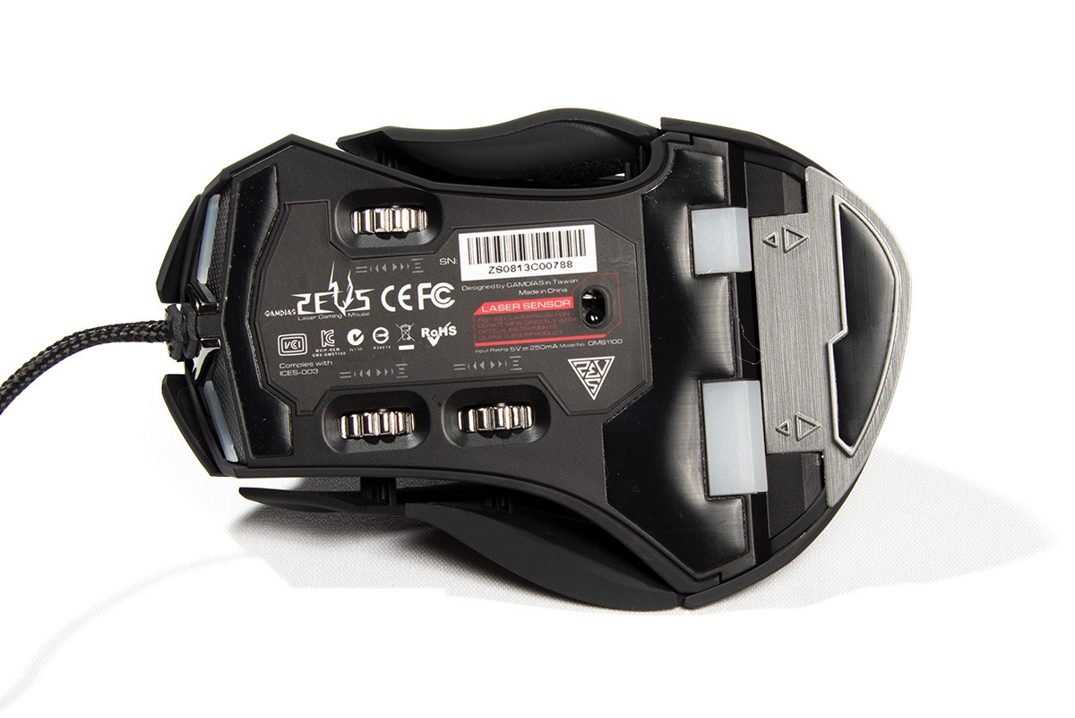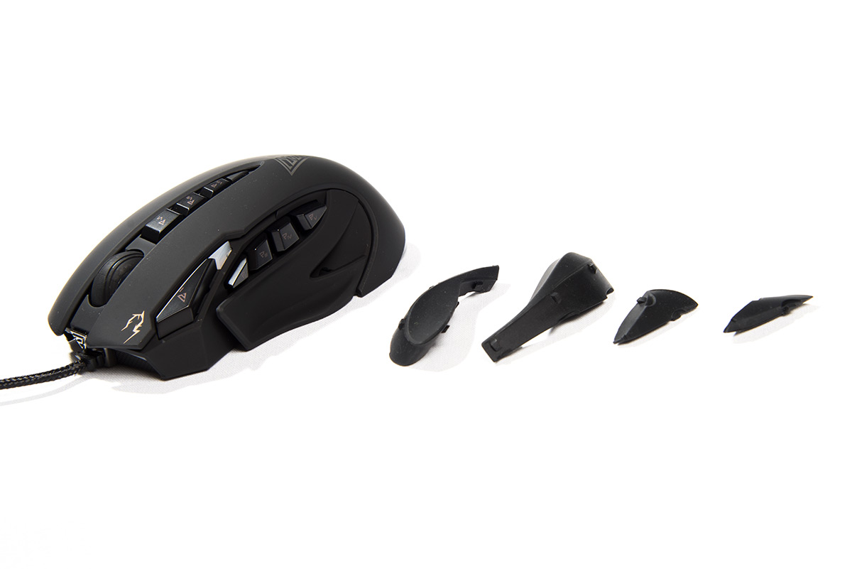The Zeus gaming mouse is a very aggressively designed and highly adjustable mouse with laser precision tracking. One of the most interesting features of the Zeus mouse is that the sides of the mouse are adjustable via wheels on the bottom as well as ergonomic inserts that fit between the adjustable areas.
